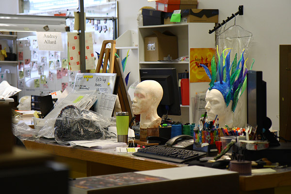 型に合わせてかつらや帽子が作られます。
