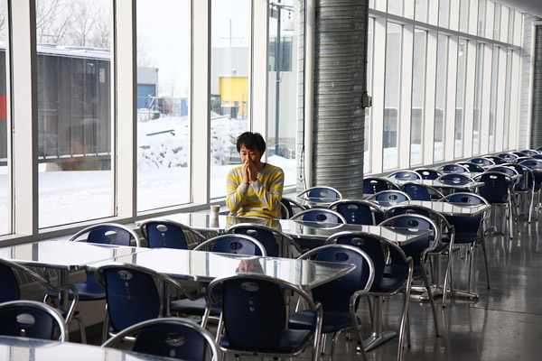 永田さんがカフェテリアで