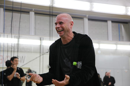 マイクも照明もないトレーニングルームの中央で、