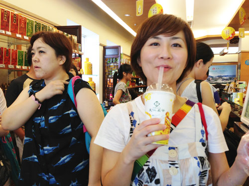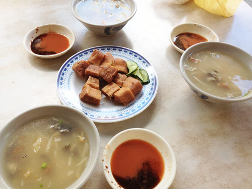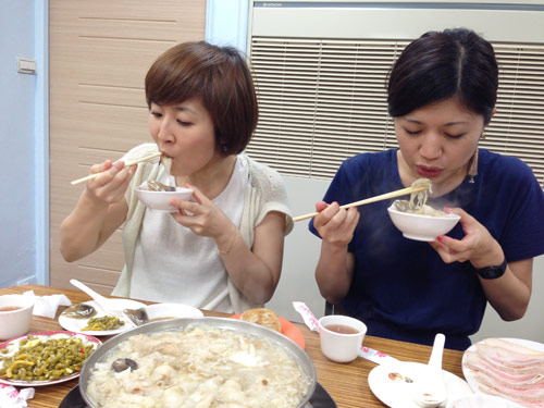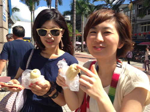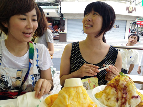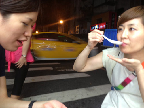 ▲2日目。「雙蓮駅朝市」に出かけ、 とうもろこし、りんごなどを 買い食いします。とてもおいしい。 台湾は南国だ。 ↓ ▲通りがかったお粥の店からものすごく いいにおいがしたので、見逃せるはずはなく。 すごーく、おいしかった。 ▲おかゆには牡蠣としょうがが入ってました。 「雙連肉粥」という店名かと思います。 ここの隣です。 ↓ ▲歩いて「山西刀削麺」へ。 1年前、スガノがひとり旅したとき 現地の人に教えてもらい うますぎて涙をこぼし食べた麺。 ▲トマトオンリーの「蕃茄麺」がおすすめです。 だし、麺、値段(270円くらい)、最高です。 ↓ ▲天仁茗茶のタピオカ入りミルクティーを飲んで 脳内の幸福度をアップさせ。 ↓ ▲油化街に行ってカラスミとドライフルーツを購入。 観光もおみやげもすべて「食」で まったく問題ありません。 ↓ ▲おみやげ探しでおなかもこなれましたので 「夏樹甜品」へ。杏仁かき氷を食べました。 自分らの黄色い声あがる。 これはひとつを3人で分けました。 ↓ ▲なぜならこの次にハシゴで 「騒豆花」の豆花を食べたかったからです。 「はぁぁ〜」とまた歓声。 いま写真を見るだけでも頬がゆるむよ。 ▲どっちの豆花もよかったので、 複数で行って、 ちがうタイプのメニューをぜひ。 ↓ ▲ぶらぶら歩いて「長白小館」へ。 ここは乗組員モギに教えてもらった。 ありがとうありがとう。 ▲白菜の鍋がおいしい。ここでも叫ぶ。 ▲これこれ。発酵したような白菜と 薄切りの豚が入っています。 ▲8種類くらいのたれをあえながら食べます。 ▲もういちど、ぜったい食べたい! ↓ ▲この頃から「私たちの故郷」と呼びはじめた 「東區粉圓」にまた寄ってしまい。 ▲「昨日とはちがう味のを食べよう」と食後デザート。 ▲好きな具材と汁を選んで いろんな味にトライできるお店です。 たのしすぎる。 さすがに、ひとつを3人でシェア。 ↓ ▲バスに乗って帰りました。
