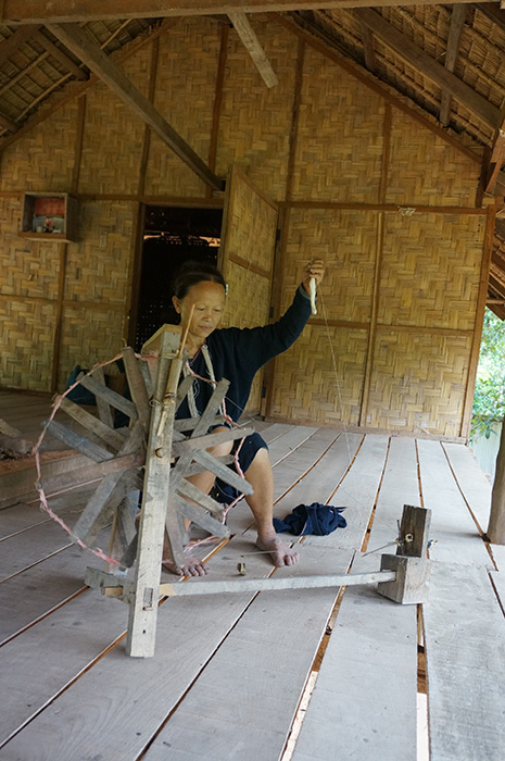 辛抱強く切れた経糸をつなぐワンさんの姿を見て、