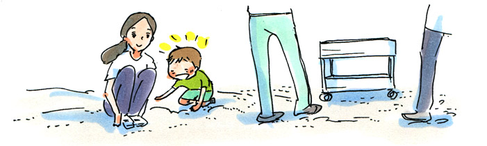 郁子さん、zAkさんとは一緒に沖縄にもいきました。 いよいよ本番舞台と同様に、稽古場に砂が敷かれました。 |