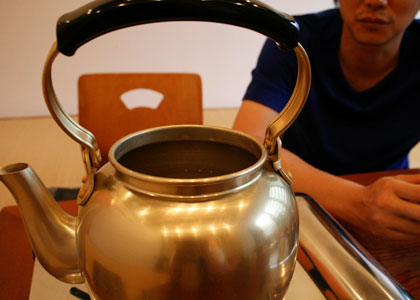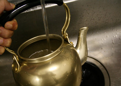 | たいせつな、水。 このやかんの写真の大事な点は、 「水道水を入れている」ということです。 |