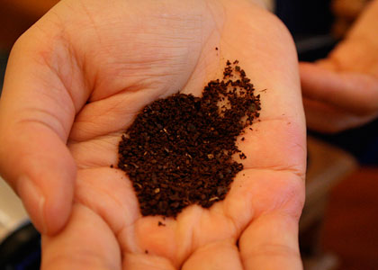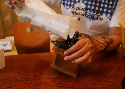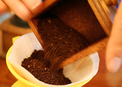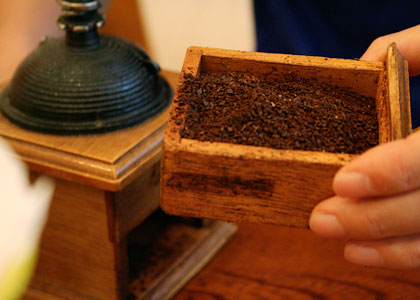 | ペーパードリップの場合、 このくらいの細かさに挽いています。 写真でわかるといいんですけど‥‥。 |