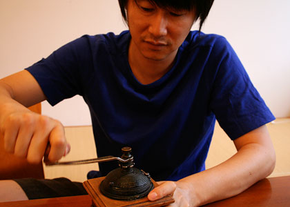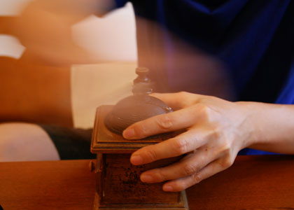 | そうらしいですよ。 挽くときはゆっくりやらないと、 豆によろしくないそうです。 福田さん、自分で言ったじゃないですか、 「コーヒーは急がない方がいい」って。 |