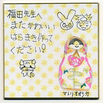 | 福田さんのハラマキの絵が 大好きなんですよね。 ファンレターまでもらちゃって。 |
