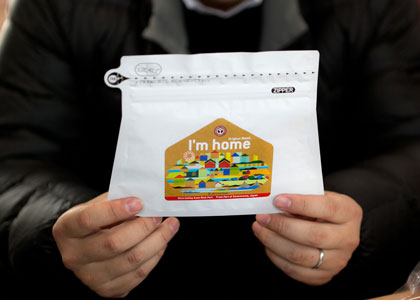 | ほんとにもう、お願いしますよ。 では、お見せしましょう、 アンカーコーヒーのパッケージのために、 マスキングテープで描かれた、 これがイラストレーター・福田利之の作品です! |