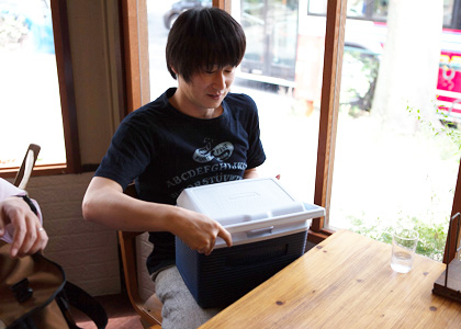 | ‥‥ん? なんですか福田さん、その箱は。 釣り帰りのおじさんみたいな。 |