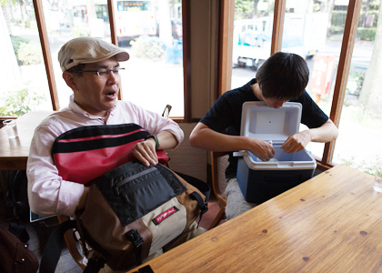 | ちょっと待ってくださいね、 いまカバンから出すので‥‥。 |