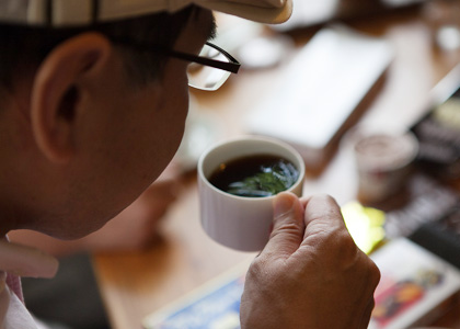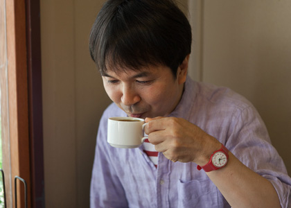| 河野さん | やや強めのローストですが、 苦みはそれほど強くないんです。 華やかな風味で、 チョコレートで甘くなっている口を さらりと流すような味わいです。 |