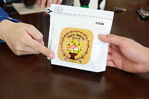 | 今回、やっちさんに依頼したのは、 「ツリーハウスブレンドなので 外で飲むさわやかなイメージを。 でも、その場所の香りに負けないような しっかりとした香りがほしい。 さらに、室内で飲んだときにも、 ふわっとすてきな雰囲気に変わるような‥‥ そんなブレンドをお願いします」 という内容でした。 |