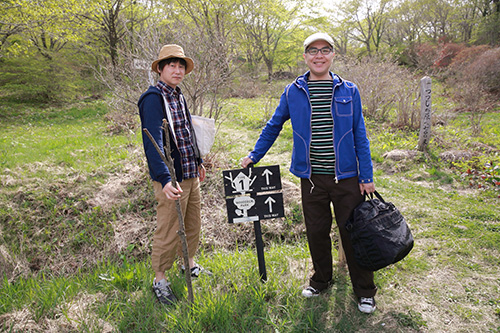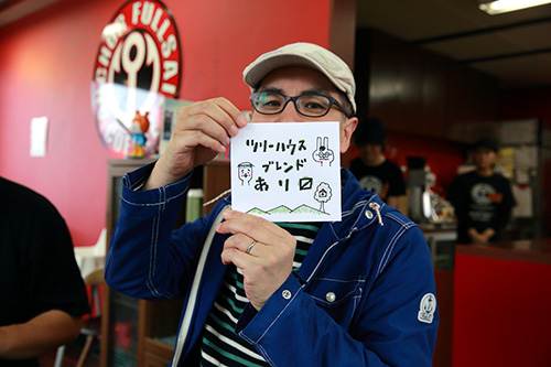 | 急に話しかけてごめんなさい。 あらためてご紹介します。 福田さん、こちらは 「東北ツリーハウス観光協会」の企画委員、 斉藤道有(みちあり)さんです。 |