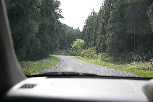 ねこのポットにお湯を入れ、 豆と器具をこわきにかかえ、 ぼくらはツリーハウスがある場所、 「徳仙丈」へと車で向かうのでありました。 |