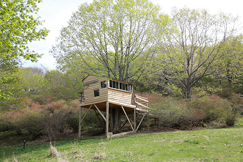 | いいですよ、とてもいいです。 新緑で。 ツリーハウスもほぼできあがっています。 |