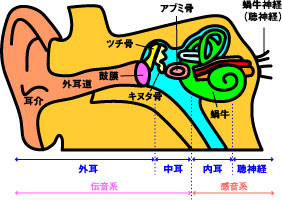 図のように、人間の耳は外耳、中耳、内耳の 3つの部分からなりたっています。 音(音波)は外耳道から鼓膜に伝わり、 その鼓膜の微妙な振動を 耳小骨(ツチ骨、キヌタ骨、アブミ骨)を介して 内耳のリンパの振動を引き起こし、 蝸牛神経(Corti器官)で音を拾い、 脳(側頭葉)へ伝わります。 このように、耳の各器官がそれぞれの役割を 果たすことで音をききとることができます。 耳のどこかの部位の炎症や機能低下により、 難聴がおこります。 どの部位に原因があるかで種類や程度が違ってきます。 ◆伝音難聴 外耳や中耳の炎症によって起こります。 音量を大きくすれば聞き取りやすくなるので 補聴器の使用は効果的です。 (耳垢栓塞、化膿性中耳炎、中耳真珠腫、 滲出性中耳炎、耳管狭窄症) ◆感音難聴 年齢が進むにつれ、または大きな音をききすぎたりすると 内耳の有毛細胞の機能が低下します。 内耳、聴神経、脳の中枢など感音系の 何らかの障害によって起こります。 小さい音がききとりにくいだけでなく、 大きい音が響いたり、ひずんだりする場合があり、 きこえても言葉の意味がわからないといった症状が あらわれます。 でも、補聴器を正しくフィッティングして使用すれば かなりの効果が期待できます。 (突発性難聴、音響騒音性難聴、メニエール症候群) ◆混合性難聴 伝音難聴、感音難聴の両方の症状が現れます。 中耳炎が悪化して内耳が冒された場合をはじめ、 いくつかのケースがあります。 耳からのコミュニケーションを考えるにあたって、 今日は補聴器業界のことを中心にお伝えしました。 最初の読者のかたのメールに、 木村さんが話されたほとんどすべての問題点が 含まれている気がしましたが みなさんいかがでしたでしょうか。 メーカー協議会のみなさんに、 読者のみなさんの声を届けることも 確実にしていきたいと思います。 次回は、「耳からのコミュニケーション」の魅力に 徐々に近づいていきたいです。 このコーナーでは、 補聴器や聞くことに関する質問を受け付けています。 件名に「質問」と書いてaid@1101.comまで お送りくださいね。 その他、ご意見などもお待ちしています! |