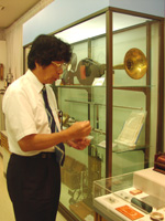 「聞くこと」についてもっと知りたい と思っているわたしたちに、 小林理学研究所というところから 「音響についての展示があるので いらっしゃいませんか?」 とお誘いを受けました。 なんと、「レトロな補聴器もありますよ」とのこと。 音を表現することの大切さを知ることができるかも?と、 さっそく、うかがってみることにしました! 今回、ご案内してくださったのは、 小林理学研究所の山下充康先生というかたで、 「音響物理学」や「建築音響」「騒音制御」 などの研究をされているそうです。 難しそうな研究をされていますが、 先生自体はとてもユニークでチャーミングなかたでした! 山下充康先生 ![]() 博物館の中 古ーい蓄音機などが ところせましとならべられています。