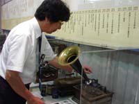 ![]() 昔の補聴器いろいろ いずれも電源を必要としない、簡単なもので、 こんなシンプルなつくりの道具でも 近くの音を十分拡張してくれます。 「声を聞きとりたい」という思いは、 今も昔も同じなんですね! ![]() 蓄音機聞いてみようか