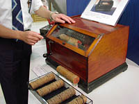 ![]() オルガニート 1880年のアメリカ製のストリートオルガンで 「オルガニート」というそうです。 曲の種類は、ダンス音楽と賛美歌があって、 結婚式などで、オルガンの弾けない牧師さんが これを使ったりしたそうですよ。