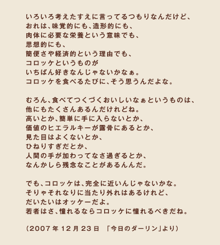 糸井重里ほどに熱いコロッケ愛とまでいかなくとも、
