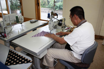 「縫い合わせる2枚の布をきれいに角を出して裏返す」