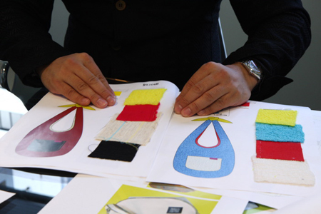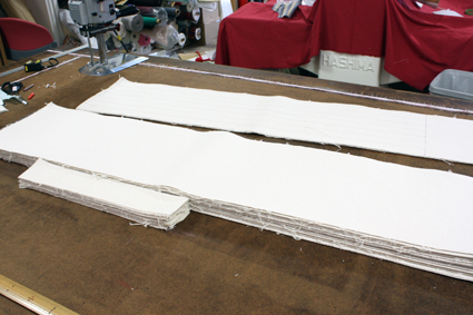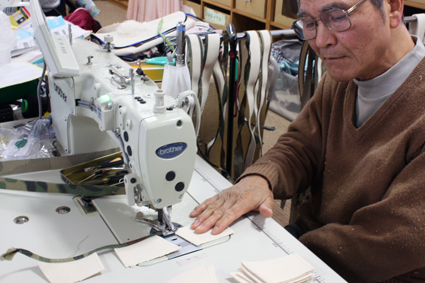 アッキィ で、三分割された生地を縫い合わせる作業を