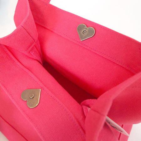 トートの口をとめるスナップは、新作ももちろんハート型。