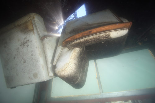 ▲沈んでいた壊れたピアノ。大船渡湾。(2011年4月5日)