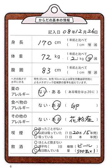最初は、からだの基本的な情報を