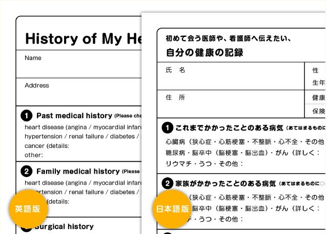 1ページ目の「自分の健康の基本情報」に書き込んだものを、