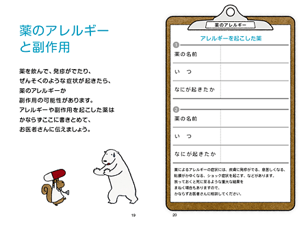 次は、薬のアレルギーと副作用を記録するページです。