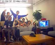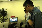 10:55 | 外部との連絡方法を教わってます。 チューヤンやヤベタローさんとつながる テレビ電話(のよーなもの)、 それからスタッフから指示される 「デジタルカンペ」の見方などを。 「オレ、こーゆーの、弱いんだよな〜」 |