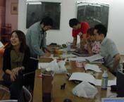 | 明るいビルはにぎやか。 岩崎ひろみさんのマネージャーの 岸本さん、 キリンビバレッジの 滝澤さんも見学! そして明るいビルには…… |