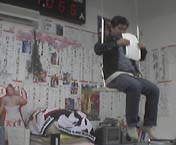 | 00:50 | 明日からの体制について打ち合わせをする darlingとT部長。 「今のペースではもたないのではないか?」 ということで明日からのシフトを 軽くしないかという T部長からの提案が・・・。 この話から電波少年的放送局の スタンスへ話は広がり BS.CSメディア論へとつながっていってます。 |