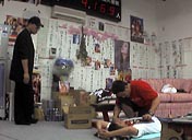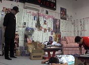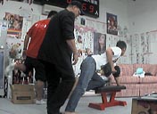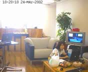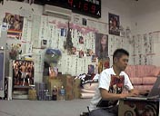 | 12:45 | 画面を横切りざまに 「おおおおぃ〜す」と朝の挨拶。 実に発音不明瞭です。 ううむ、今日の出だしはローテンションと見たぞ。 こんなで、トレーニングは大丈夫なのか!? |