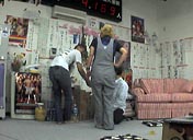 15:25 | なんか、ラーメン食べてる姿さえ 可笑しい。 ソブエさん、 「床にラーメンおいて食べるのって 久しぶりだよねえ」 あのう、ふつうそんなこと、 あまりやらないと思うんですけど… 「おいしいねえ」 「おいしいねえ」 「あのさ、 どんべえの“どん”って、 “うどん”の“どん” なのかな? 」 |
