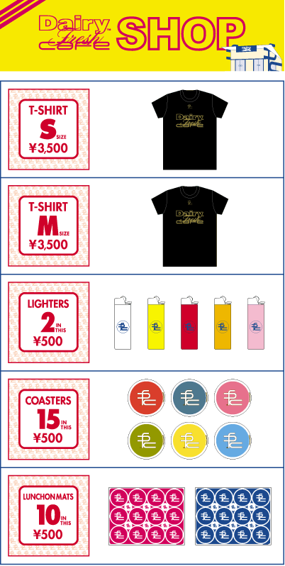 | Dairy Fresh cafe」第2回 「Dairy Fresh cafe」では、 オリジナルグッズの販売もしています。 今回はそのグッズをカタログ風にご紹介します。 ![]() ![]() グッズ使用例 ![]() スタッフユニフォーム着用例 (帽子とエプロンは非売品) と、こんな素敵なグッズ達を販売しているのですが、 残念なことに、この展示をやっている 「ギンザグラフィックギャラリー」でしか買えません。 そのうちカフェができればそこで売ったり、 通販とかもするかもしれないけど、 とにかく今買えるのは 「ギンザグラフィックギャラリー」だけ。 みんな買いに来てーーーー。 (つづく) |