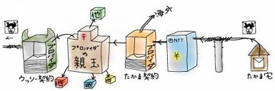 電話から私の契約してるプロバイダに電話をかけます。 |