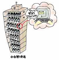 で、中央郵便局から、ウッシーさんのプロバイダの、