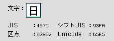 2バイト文字コード:JIS、漢字JIS(区点コード)、Shift JIS、