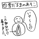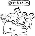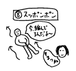 | 中出 | 「3億匹の友だちと生温かい沼地に投げ出されました。 私は前方にいたので助かりましたが、 後方にいた2億匹はその後すぐ外に 押し出されてしまいました。 『箱、とってよ〜』という気だるい声が聞こえ、 白い大きなものが入口に押しつけられましたから、 彼らは拭かれ死にしてしまったのでしょう」 |