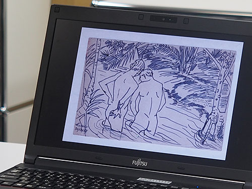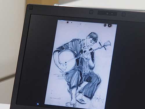 ディン・Q・レ 《光と信念:ベトナム戦争の日々のスケッチ》 2012年 100点のドローイング:鉛筆、水彩、インク、油彩、紙/シングルチャンネル・ビデオ、カラー、サウンド サイズ可変、35分 所蔵:カーネギー博物館、ピッツバーグ 展示風景:「ディン・Q・レ展:明日への記憶」森美術館、2015年 撮影:永禮 賢 写真提供:森美術館