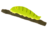 芋虫の緑色の体液が‥‥。