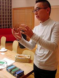 世に「デザイナー」という職業があることは、 みなさんご承知だと思います。 おもむろに書き出してみました、 年賀状以来の「ほぼ日」出没の 田中宏和でございます。 昨今では、 「デザイナー住宅」といって、 デザイナーばかりが、うようよ暮らしている住まいが 人気なわけです。 うそですけど。 で、しかも「住宅」に比べ、 「デザイナー住宅」は、坪単価が高い。 これは、ほんとです。 つまり、少々値段が高くても、 デザインが良いほうを選ぶという態度の人が 増えていることは確からしいわけです。 デザインというものの価値は上がっている一方で、 「デザイナーとは何をする人か」ということは、 あまり知られていないような気がします。 だいたいの人が「デザイナー」と聞いて、 まず思い浮かべるのは、 テレビでよく見かける、 「個性的」で「感性のするどい人」の代表みたいな 役回りのファッションデザイナーだったり、 芸大か美大を出て何かと絵を描くのが仕事の 「水森亜土みたいな人」ぐらいの印象しか、 みなさんお持ちじゃないんじゃないかと思うわけです。 人がデザインについてどんなことを思っているのか、 そんな一端を知れる調査結果を紹介する 渡り船なサイトがありましたので、 ご案内したいと思います。 演歌のサイトではありませんからね。念のため。 Gマークで有名なグッドデザイン賞が行った 「あなたにとって デザインとは何ですか?」アンケートです。 まず、 「あなたがデザインに関して 強く興味を持っている 商品等のジャンルを挙げてください」との質問。 第1位は圧倒的に「乗用車」、 ついで椅子からインテリア全般に至る 「家具・インテリア」。 第3位の「パソコン・周辺器機」以下、 「家電」「携帯電話」「住宅」の順で続きます。 ま、どれも高額商品の部類に入ります。 また、こんないい質問もしてるんですよ。 「あなたにとってセクシーなデザインとは?」 いいぞ、グッドデザイン大賞事務局! まじめなアンケートにお色気混ぜましたね。 気になる結果ですが、 1位「自動車」、2位「衣類」ふむふむ、 3位「コカ・コーラのボトル」なるほどねえ、 4位「下着」・・・。 こらこら、「下着」ってどういうことや。 “下着のデザインがセクシーなんじゃなくて、 下着を見る場がセクシーなんやろがーっ!“ と声を荒げたくなりますが、 「セクシーデザインの原型は下着」と 頭にメモしておこうと思います。 アンケートの詳しい結果は、 こちらで見られます。 (PDFというファイル形式での閲覧ですので、 アプリケーションをお持ちでない方は ダウンロードしてみてください) さて、何をこう長々と書き連ねているかというと、 今回の感心力の矛先、 って狙っちゃ失礼ですね、 今回の感心力の対象であるところの、 佐藤卓さんをご紹介するためであります。