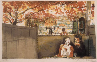 あ、シャンパンの品書きもある。 こまかいなあ。 織田一磨という人は、 こういうものをたくさん描いたんですね。