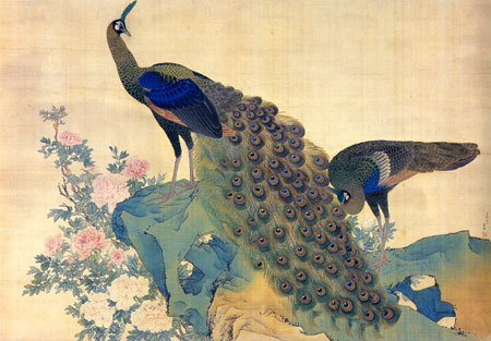 応挙の『牡丹孔雀図』の孔雀を真似た