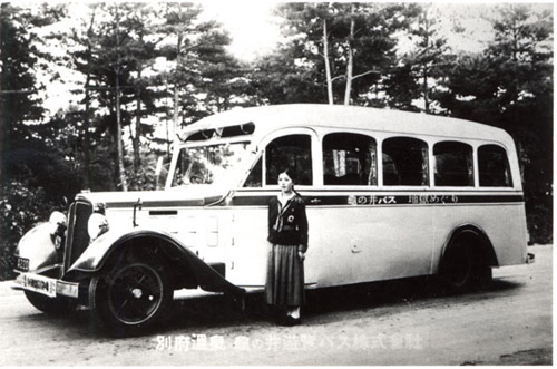 少女車掌による観光ガイドは、 亀の井旅館の女性が バスに乗り込み、 案内をはじめたところ、 人気を得たことに はじまるといいます。 和服姿の案内は 重労働であったため、 洋服姿の少女車掌を募集、 評判となっていきました。