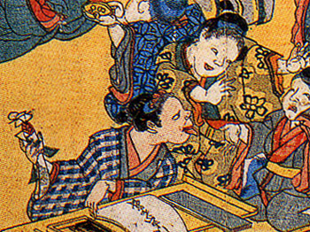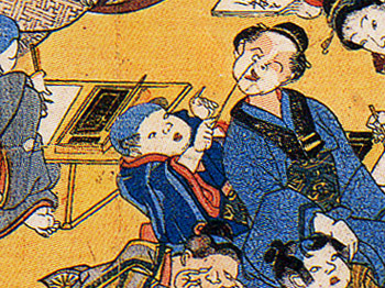 こんどの江戸博は「江戸の学び」展! ほぼにちわ、シェフです。 江戸東京博物館ではじまったばかりの 「江戸の学び」展に行ってきました。 くわしい話は、学芸員の市川さんと石山さんから たっぷり聞いてきましたので、 いずれまとめて紹介させていただくのですけど、 まずは、こんな展覧会やってるよーっ、という告知を させていただきますね! (ハイ、もう、やっているのです。 ちなみに3月26日(日)までの開催です!) この展覧会は、 寺子屋って、なんだったんだろう?! というところから、 庶民に「文字」を通じて「教養」が おおらかにのびのびと広まっていき、 いかに江戸の人たちがそれを楽しんでいたか、 ということを知る展覧会です。 まずはこの絵を見てください。 ![]() 歌川広重の「諸芸稽古図会」という作品の一部なんですが、 ‥‥子どもたちの表情が、 ものすごく楽しそうに描かれてます。 こんなにイキイキと「学んで」いたんです! この絵が誇張をしているわけではなく、 同じ時代の寺子屋を描いたものは、 多くがこんな感じで、 のびのびと楽しそうなんですよ。 この絵では子どもたちが、 「よみかきそろばん」でいうところの 「かき」をやっています。 お習字ですね。 手前の子が拡げているのが、 じゃばらになっている、いわば教科書です。 子どもたちは、紙がまっくろになるまで 何度も書いているようです。 そでが汚れないように、たすき掛けをしたりして。 この表情‥‥ほんとに楽しそう! そして右に、文机に正座して、 左手に茶わんを、右手に線香を持ってる子がいます。 ![]() この子はいたずらをして、 「きみはそこに座っていなさい」と 怒られちゃったところなんだそうです。 それにしても、反省の色がないというか、 「てへへへへ」という感じ。 あんまり効き目がないのはあたりまえで、 これは強い体罰とはちがうということでした。 そもそも、そんなふうに強制して学ばせることには 意味がないと、当時は考えられていたんだそうです。 なのにこんなふうに座らされるなんて、 よほどの悪ガキだったんでしょうねえ。 (もちろん本格的な問題児もいたようで、 とある問題児を記録した先生の日記というのが この展覧会で公開されています。 授業中寝るいたずらするともだちを殴る、 ちんこの絵を描くちんこを出して歩く‥‥ その暴君ぶりに先生もほとほと困ったようです。 それでも寺子屋に通ってるんだから! でもなんで先生、 そんな記録つけてたのかなあ?!?!) もう一枚。 こちらは一寸子花里という人の手による 「文学ばんだいの宝 末の巻」という絵です。 ![]() 女の子ばかりの寺子屋のようすです。 こういう寺子屋もあったんですね。 で、女の子だからおしとやか‥‥ というわけでもなかったようで、 そもそも文机がまっすぐ並んでないし、 マジメにお習字してる子や 読みかたを習ってる子も、いることはいるけど、 ほとんどの子が大騒ぎです。 人形遊びをしてる子もいれば、 ままごとしてる子もいます。 ![]() まんなかあたりには、 先生の鼻にいたずらしてる子もいます。 ![]() ぼくが先生だったら、頭かかえちゃうなあ、 というところなんだけれど、 これ、かなり「当たり前」の光景だったっていうんです。 先生もぜんぜん怒ってないしなあ。 「みなさーん、お習字ですよ!」というような 一斉教育ではなく、個別にのびのびと、 強制的な時間割なんかもちろんなくって、 こうやってたのしく遊びながら、学んでいたんですね。 ちゃんとした統計はないそうなんですが 江戸の市中だと、おそらく8割くらいの子どもが 寺子屋に通っていたんだそうで (義務教育じゃないのに、ですよ、当時は!)、 だから江戸の庶民の識字率ってすごく高くて、 それをベースに、読書というたのしみが広がり、 たとえば『南総里見八犬伝』や 『東海道中膝栗毛』がベストセラーになったんだそうです。 そりゃそうだ、字が読めなきゃ本は読まないですもんね。 幕末にやってきた外国人が 日本人の識字率の高さ、 メガネをかけている人の多さ、 それから本が安いことに、 すごく驚いたという文献が残っているそうで、 そういうの聞くと、ちょっと誇らしく思いますね! ちなみに男の子より女の子のほうが、 さらに遊芸を習得しに(踊りとか三味線とか) ほかの教室にも通う子が多かったそうで、 それは、庶民の女子の最高の就職先は 大奥のようなところで、 そのためには教養が不可欠だったからなんだそうです。 寺子屋を早引きしてまで お稽古に行く子もいたらしいですよ。 いっぽうの男の子は、寺子屋が終わったら 家の手伝いをしたり、あとは風呂に行ってたり。 こんなふうに描かれた子どもたちの姿を見ていると、 この展覧会には、 たぶんどこかに子どものときの自分がいるんだなと 思ったりしました。 取材した内容は、まとまりしだい、 このページでたっぷり紹介しますので、 どうぞ楽しみにお待ちくださいね〜。 |