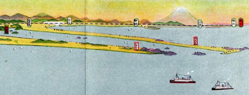 伊勢湾を描いて、朝日を描いて、富士山を描く。