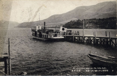 箱根名勝 清澄の芦の湖に浮ぶ遊覧船(神奈川県)昭和初期