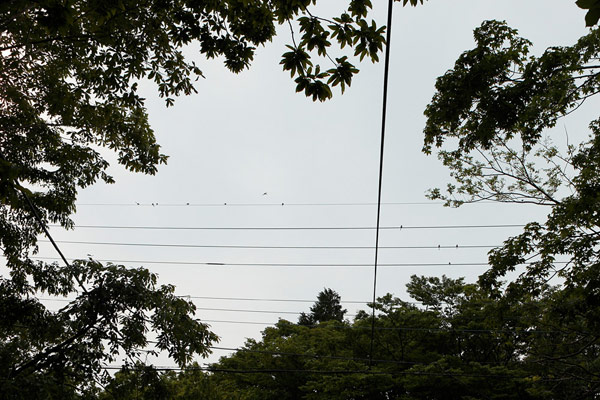 ▲そのうち11羽が電線の上に止まった瞬間。